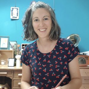 « Quelques temps chimiste en industrie pharmaceutique, j’ai abandonné mes fioles et troqué ma blouse de laboratoire pour celle d’artiste peintre en 2011. Je deviens également illustratrice jeunesse en 2012. Installée à Saint-Loubès en Gironde, j’expose mon travail de peinture et illustration en salons, marchés d’art et boutiques de créateurs en France et à l’étranger. En autodidacte et curieuse insatiable, je travaille en technique mixte : collage de papiers et tissus en tous genres, que je récupère et associe à la peinture, puis feutres, crayons, pastels etc. Je jongle avec la couleur et la matière, tout se mélange. Depuis 2 ans, j’explore également l’illustration numérique et plus récemment j’ai découvert la technique du cyanotype, que j’adore !