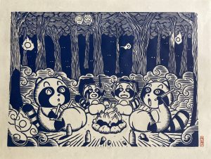 Takuma Léo Shindo est un artiste bordelais d’origine japonaise. Il travaille la gravure essentiellement sur bois et linoleum, en utilisant du papier washi (papier traditionnel japonais) et un baren (outil manuel japonais utilisé dans l’impression des estampes traditionnelles). Il puise son inspiration dans ses cultures occidentale et japonaise. Parallèlement à ses activités d’illustration et de gravure, il est musicien et accompagne depuis 2011 l’auteur de bande dessinée Adrien Demont dans des performances graphiques et musicales. Sous le nom de tAk & Demont ils entremêlent leurs disciplines en des instants de création en direct, emportant les spectateurs dans des moments de rêveries inspirés de leurs univers respectifs.